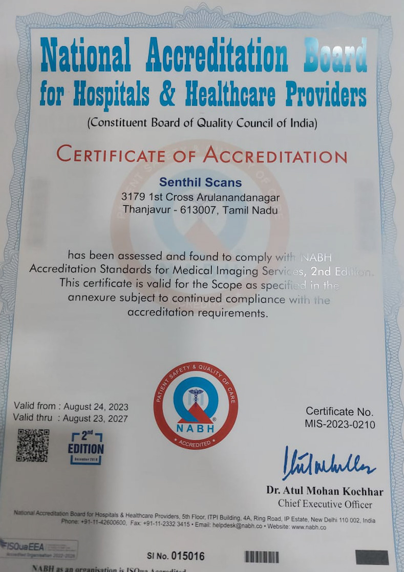 Senthil Scans, the popular Radiodiagnostic centre in Thanjavur started in 2012, is now a full-fledged, advanced centre. The centre is equipped with all state of art machines for a diagnostic centre including Ultrasound, CT scan, MRI scan, Mammogram, XRay, Laboratory, etc.,